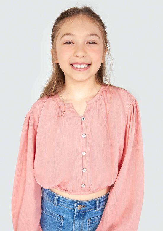 Blusa Infantil Menina Manga Longa Cropped - Rosa
